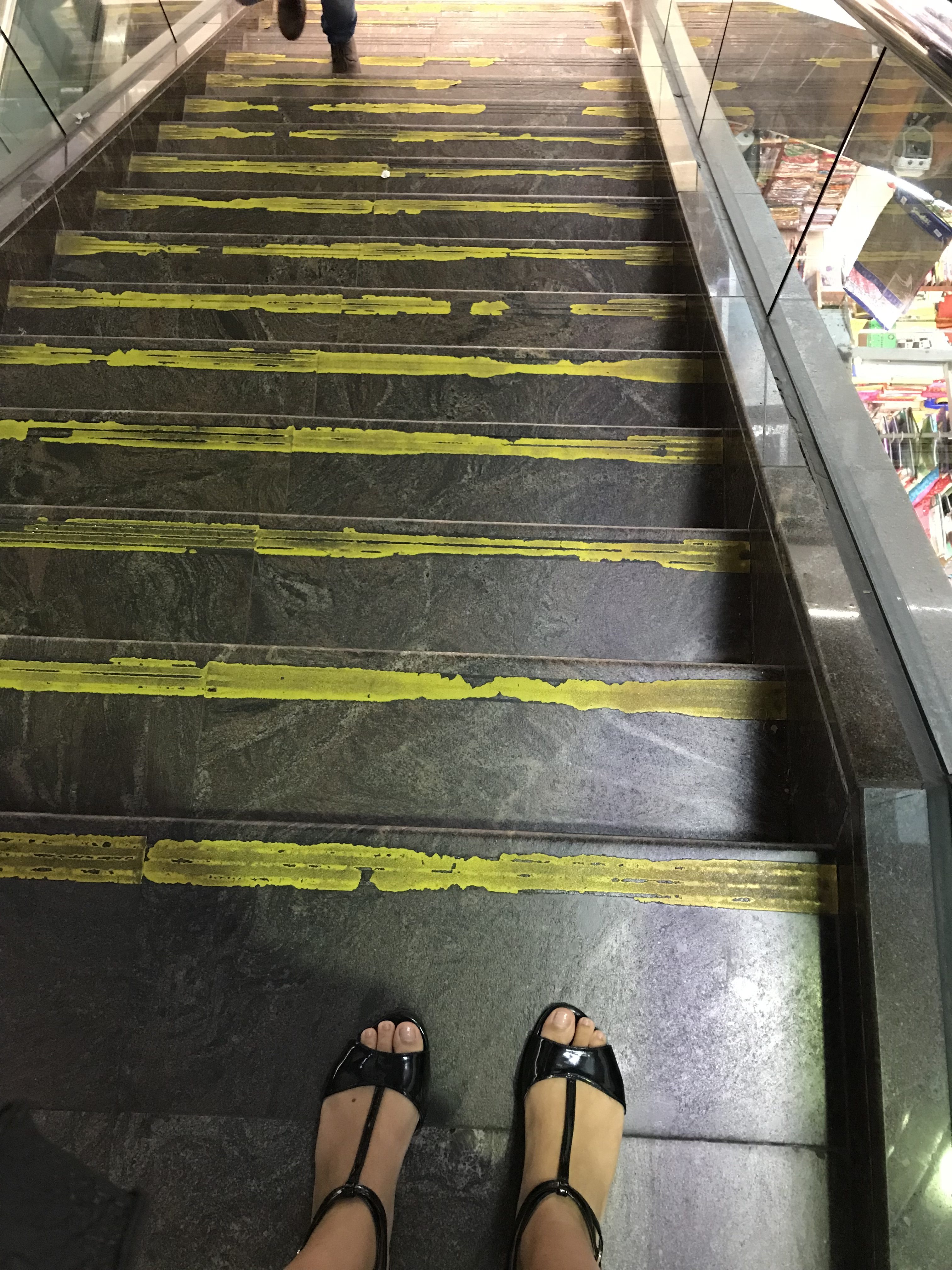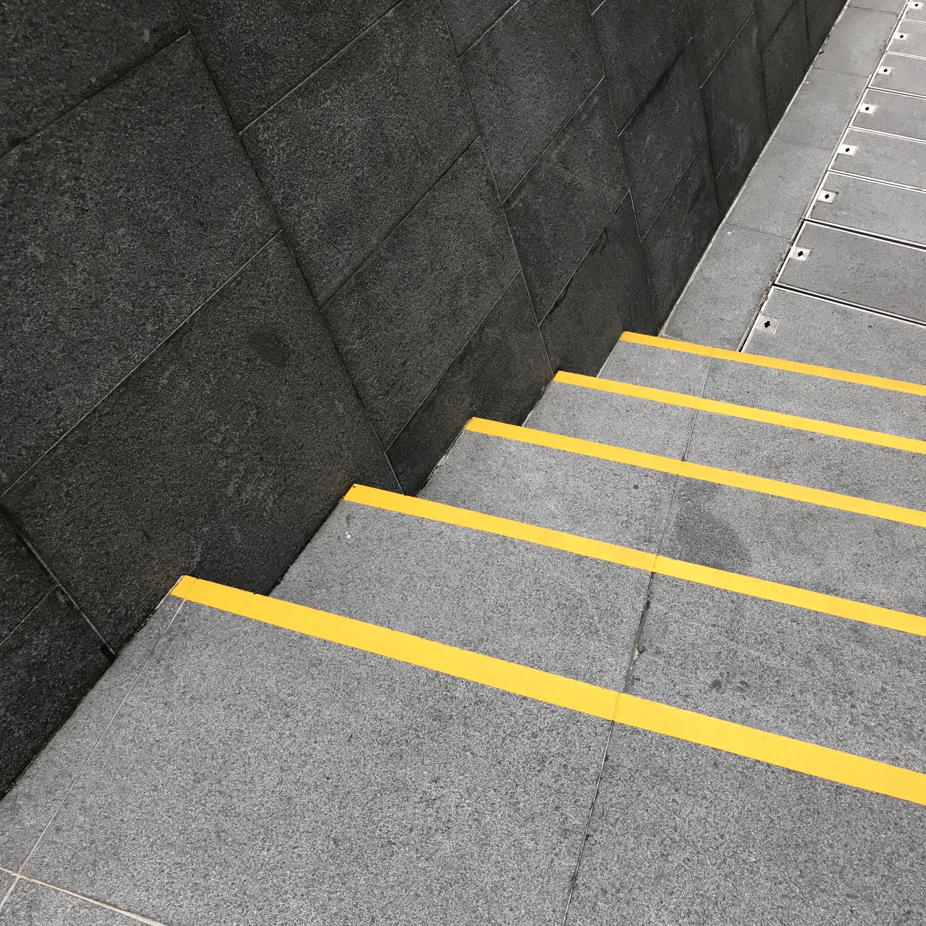 Je ne parle pas des pubs et stickers de Minion partout dans la ville – quoi qu’un Minion Café se soit ouvert récemment à Somerset. Je parle ici de bandes jaunes collées ou peintes sur les murs, marches ou autres dénivelés. Comprenez, s’il y a une bande jaune, c’est que quelqu’un s’est fait mal.
