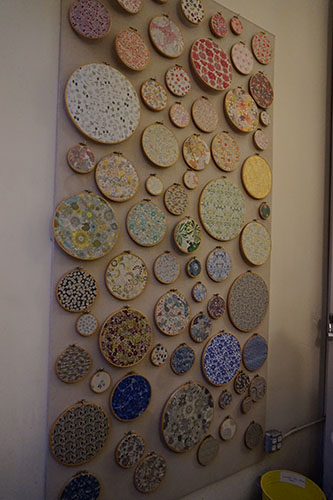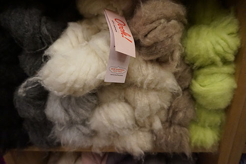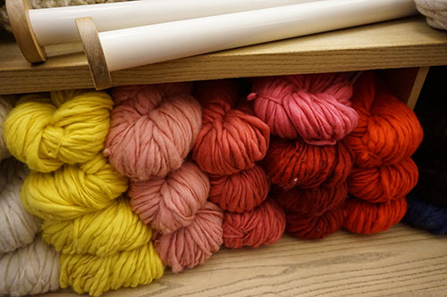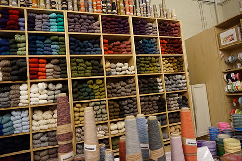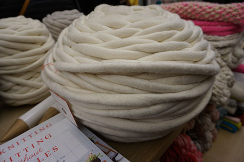 La petite boutique est coincée entre deux autres échoppes plus grandes. A l’intérieur, il y fait chaud et il y a de la couleur partout, des pelotes à perte de vue, des tissus plus colorés les uns que les autres, des fils et des aiguilles si énormes qu’on a l’impression d’être devenus aussi petit qu’Alice.