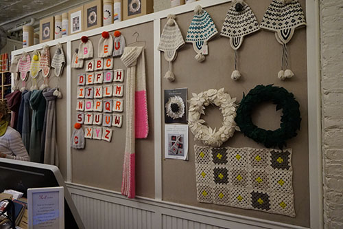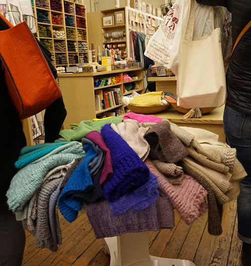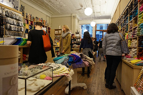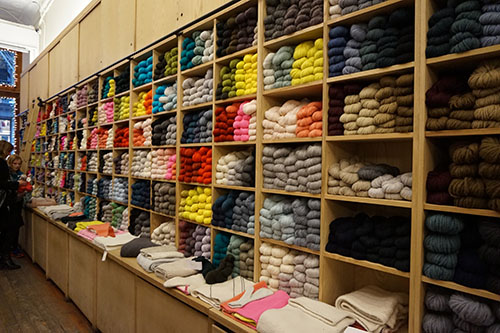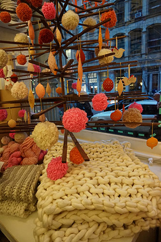 En vacances sur le « nouveau continent », je ne perds pas le nord. Souvent, j’ai voulu toucher ces écheveaux de laine ou voir en vrai les modèles proposés par cette boutique. J’ai pu m’en donner à cœur joie lors de mon escapade hivernale à New York.