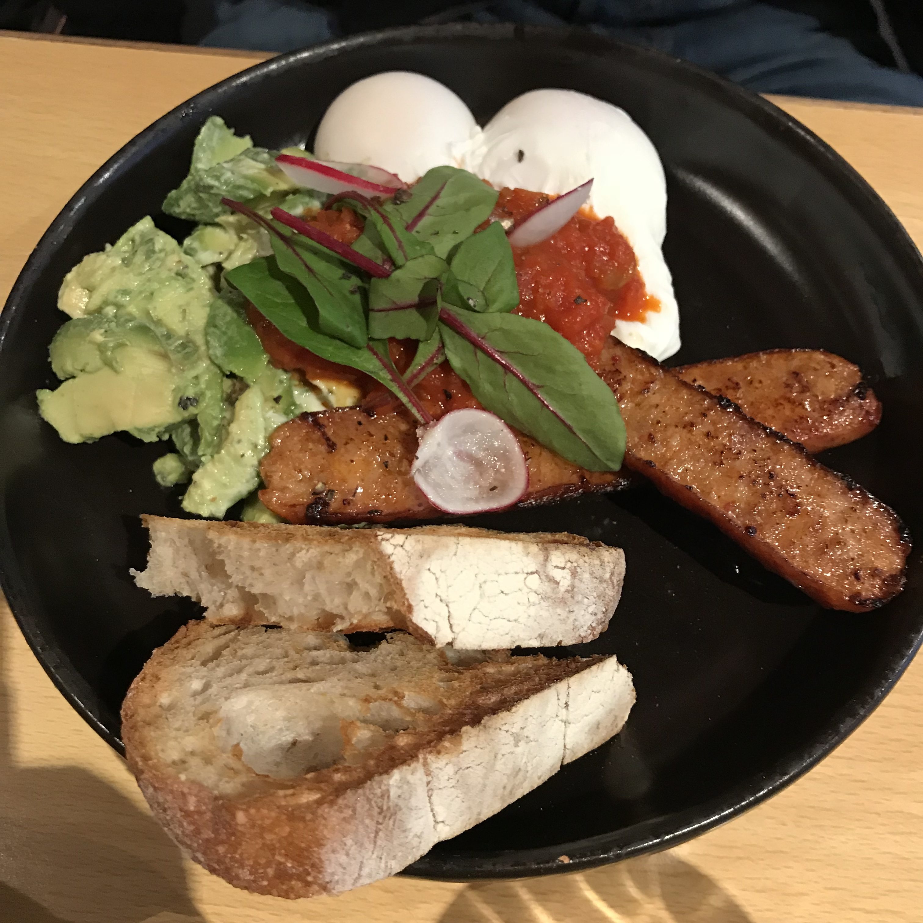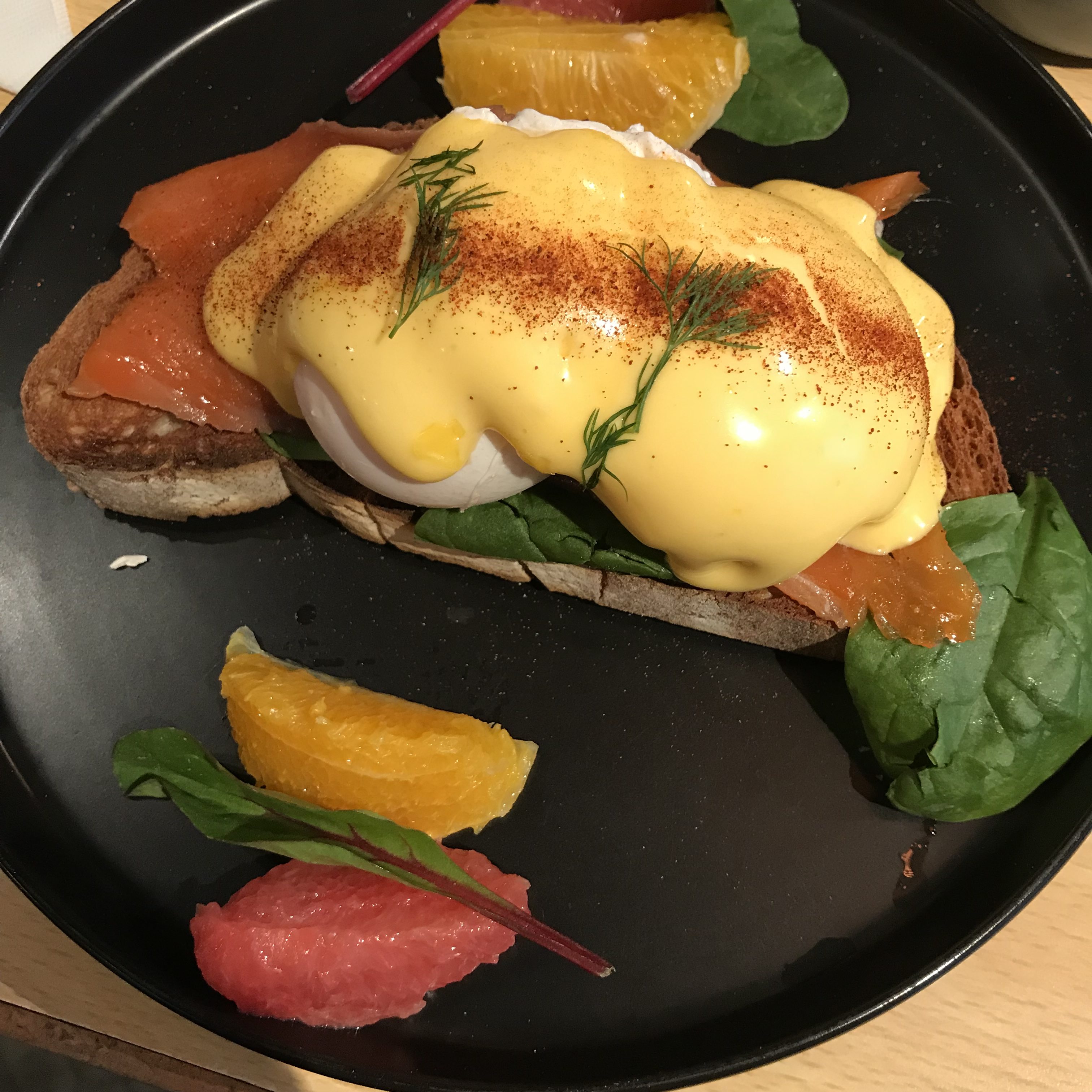 Aimant les oeufs bénédicte et ayant une folle envie de saumon fumé, j’ai pris la tartine mêlant ces deux succulents ingrédients. Et pour tout vous dire, le plat a largement fait le job. C’était bon, servi à la bonne température et très bien assaisonné. Le Fluffy Boy a opté pour la tartine à l’avocat saucisses et oeufs pochés.